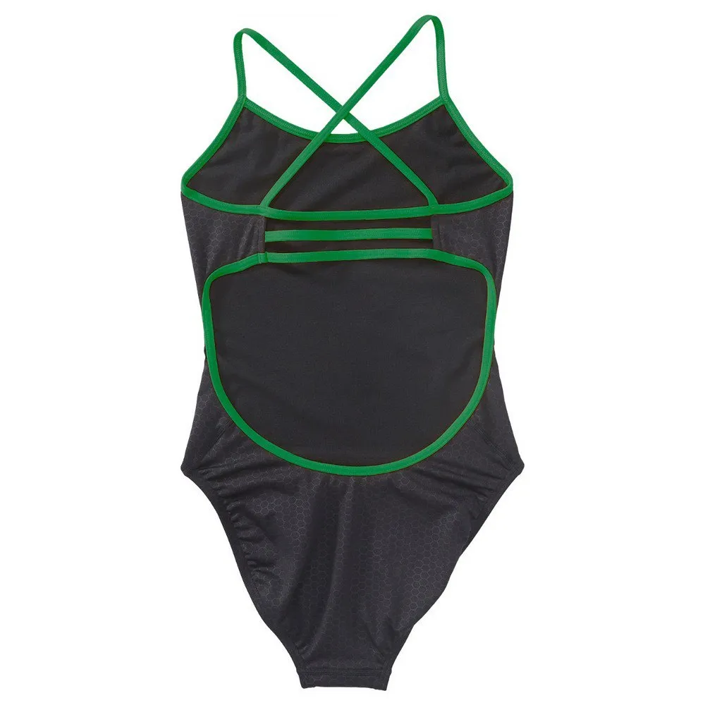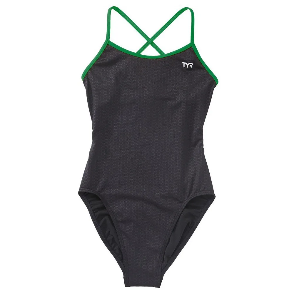 Fabricado con el tejido más duradero de TYR, Durafast Elite ™, el traje de baño de alto rendimiento THEX7Y utiliza fibra de poliéster de alto denier y una innovadora construcción de punto circular para combinar la resistencia y solidez del color del poliéster con la comodidad del spandex. Con un escote medio, correas elegantes / flexibles, espalda en X abierta con triple ribete y pierna de corte alto, el Trinityfit es ideal para los atletas que desean una cobertura cómoda durante cada natación.